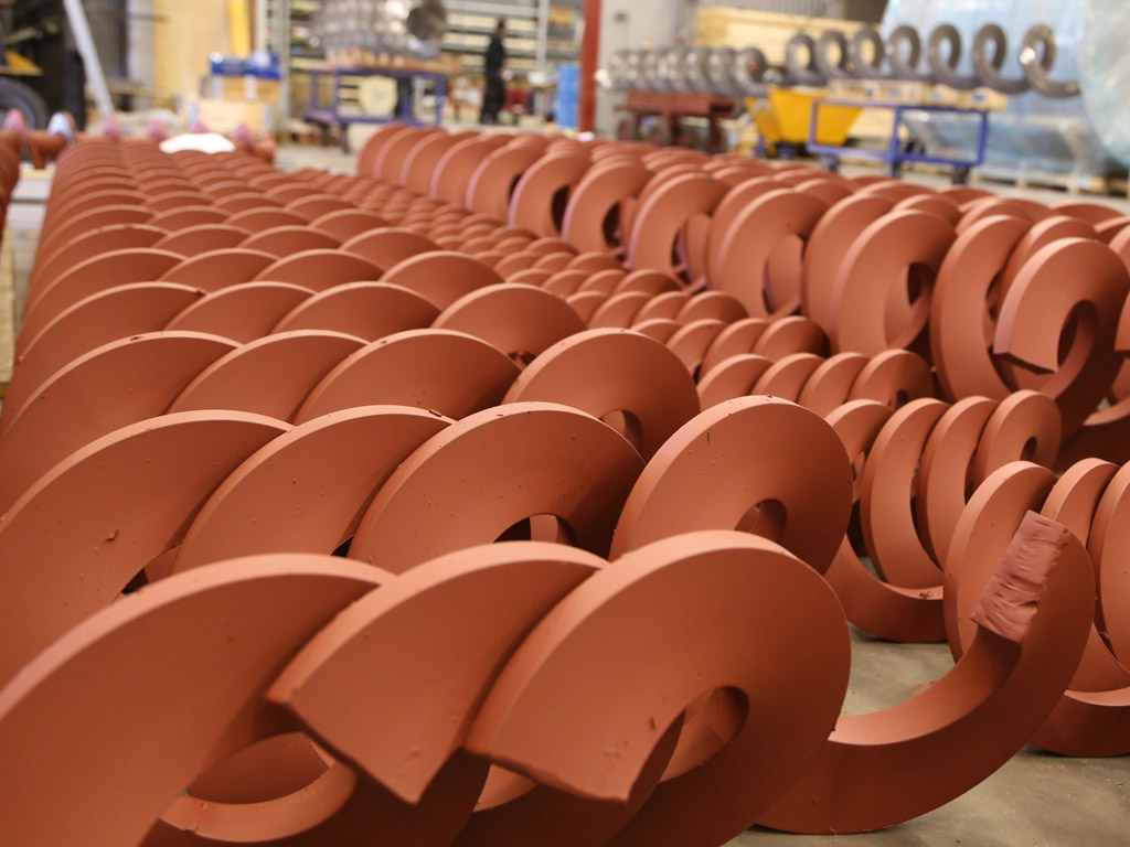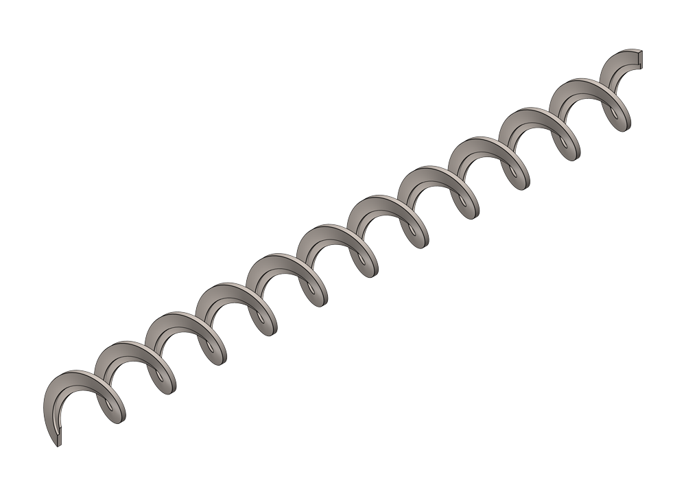 I egenutvecklade maskiner tillverkas kundunika transportskruvar i olika dimensioner och material. För kunds räkning konstrueras och produceras spiraler för montering i våra kunders flöden och maskiner. Vi tillverkar spiraler för nya projekt, eller som reservdelar till befintliga anläggningar. Konstruktion, produktionsteknik, materialegenskaper och spiralernas tjocklek bidrar till extrem slitstyrka och hållbarhet.